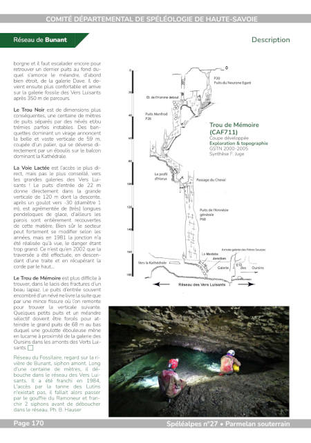 - Un atlas topographique des grands réseaux de Bunant (plus de 36 km de développement) et de la Diau (plus de 49 km).
